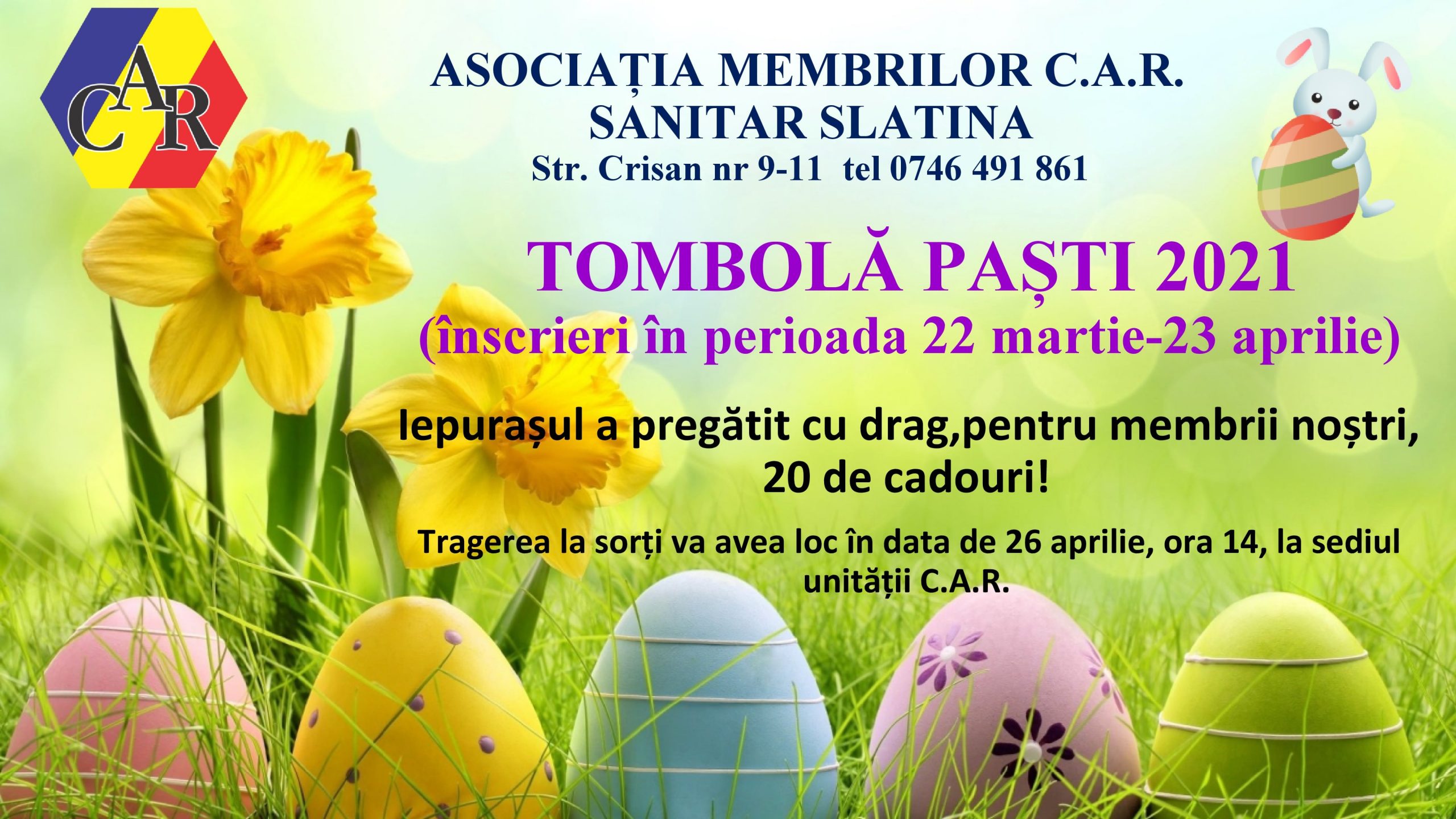 Asociatia membrilor CAR SANITAR SLATINA organizeaza 2 tombole pe an cu ocazia sarbatorilor Pascale si de Craciun.